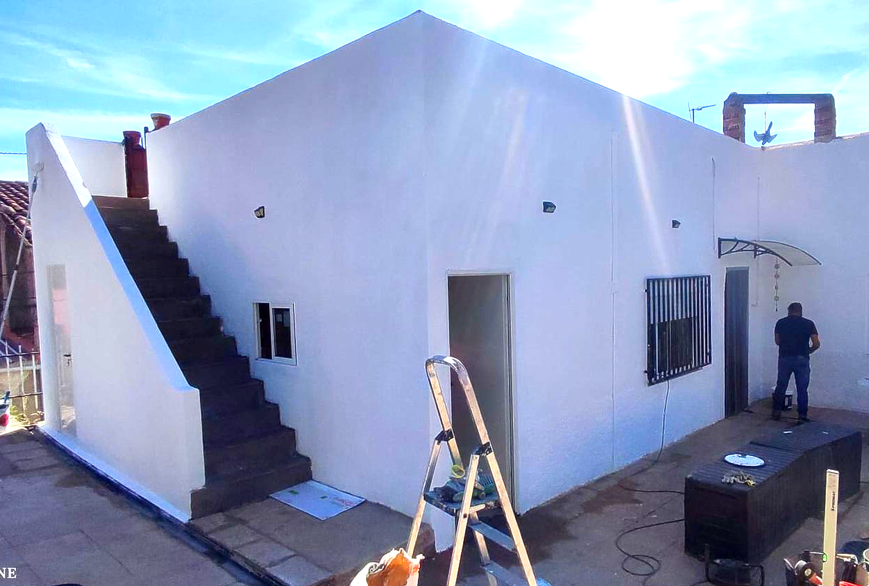 Puesta a punto de cubierta con pintura renovada, desatasco de canalones y mejora de instalaciones interiores mediante pintura de paredes y puertas, logrando un espacio más limpio, seguro y renovado..
