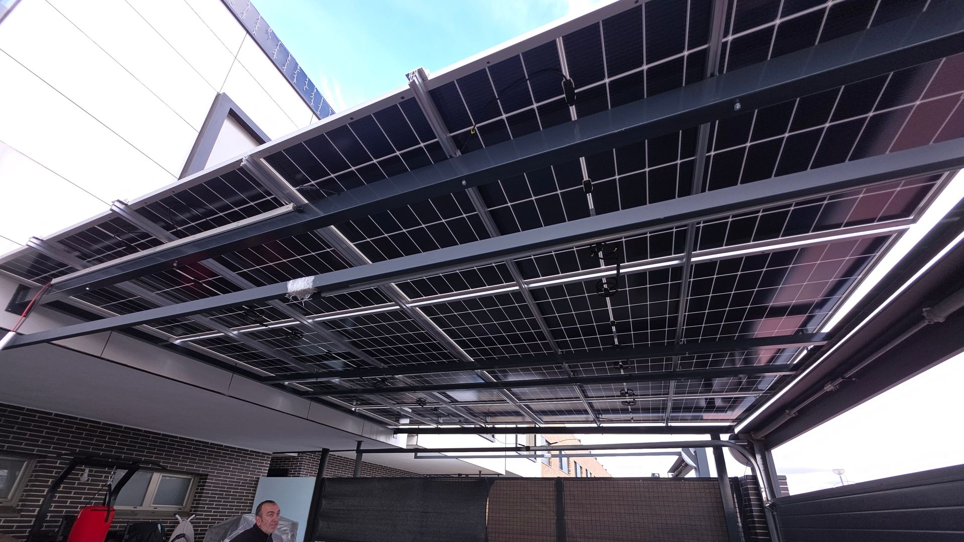Instalación fotovoltaica de 5 kW con paneles solares de alto rendimiento y bastidores de hierro para una sujeción segura y duradera.